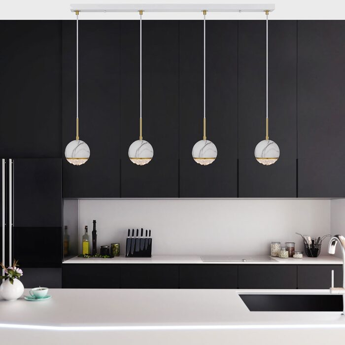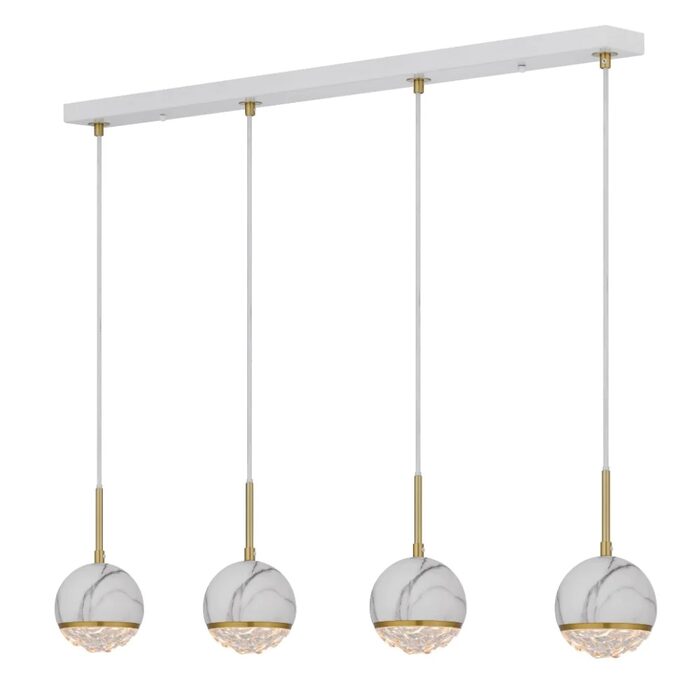 Elegance and charm, describes the Oneta family of lighting fixtures. A marble look sphere houses a precise optical faceted dome to provide a modern luxury exclusive look. The pendants are available as 1, 4 bar, 5 or 10 light cluster. Complimentary pieces also include wall, table and floor lamps.