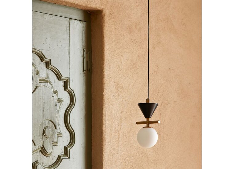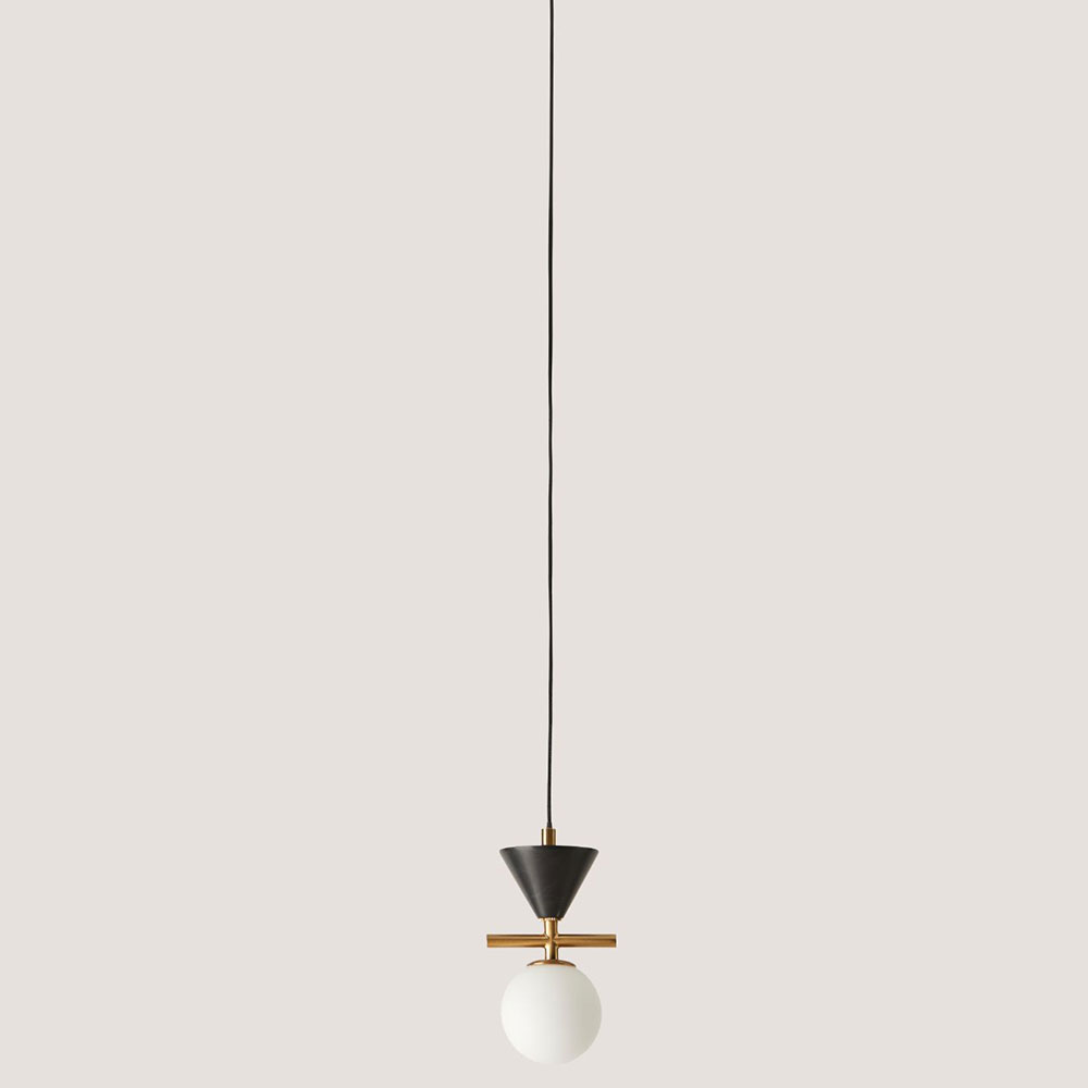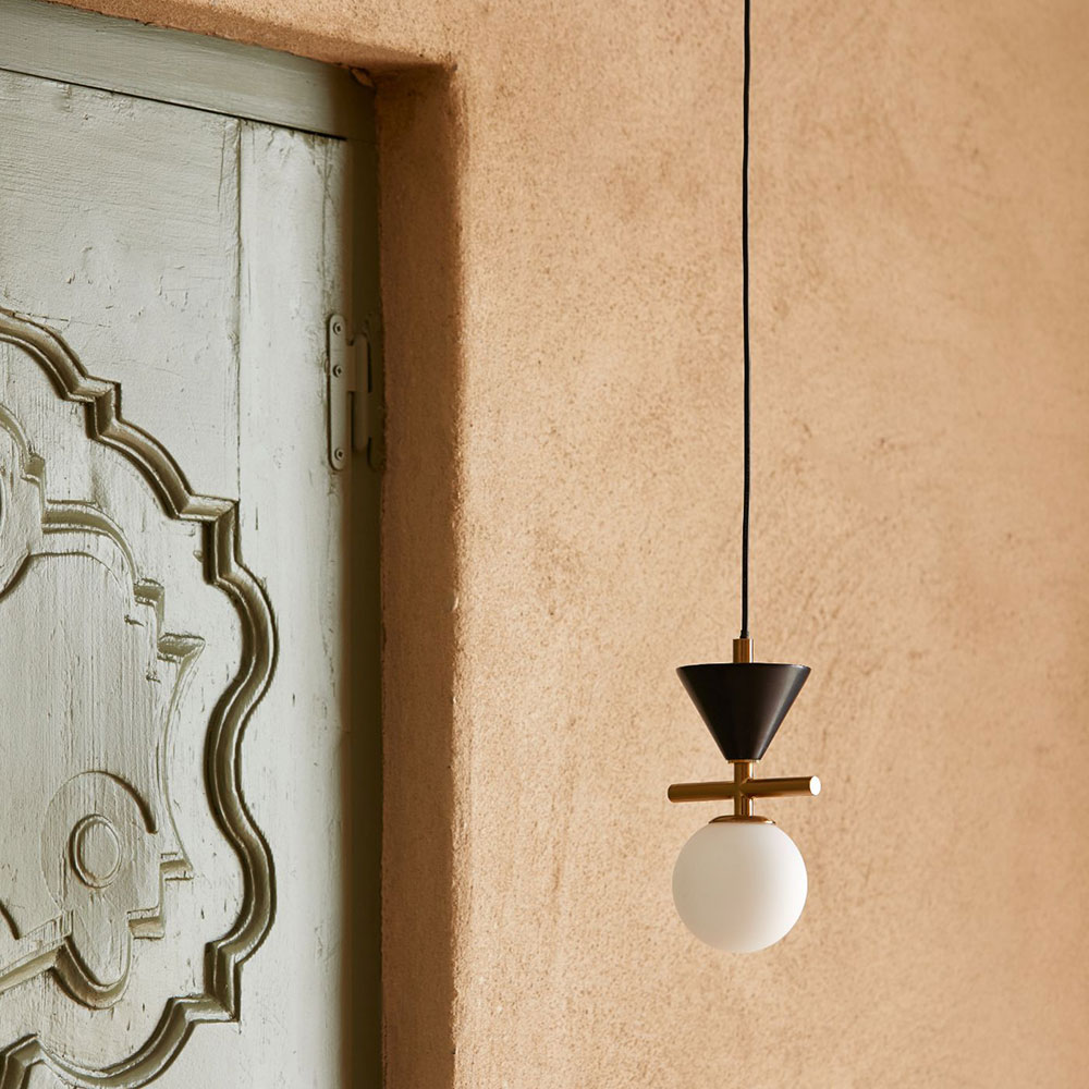 Featuring a marble cone, steel structure with an opal glass shade, compositionally a myriad of textures that presents itself with a minimal aesthetic.