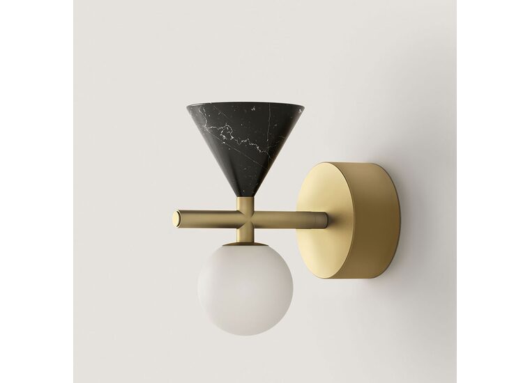 Featuring a marble cone, steel structure with an opal glass shade, compositionally a myriad of textures that presents itself with a minimal aesthetic.