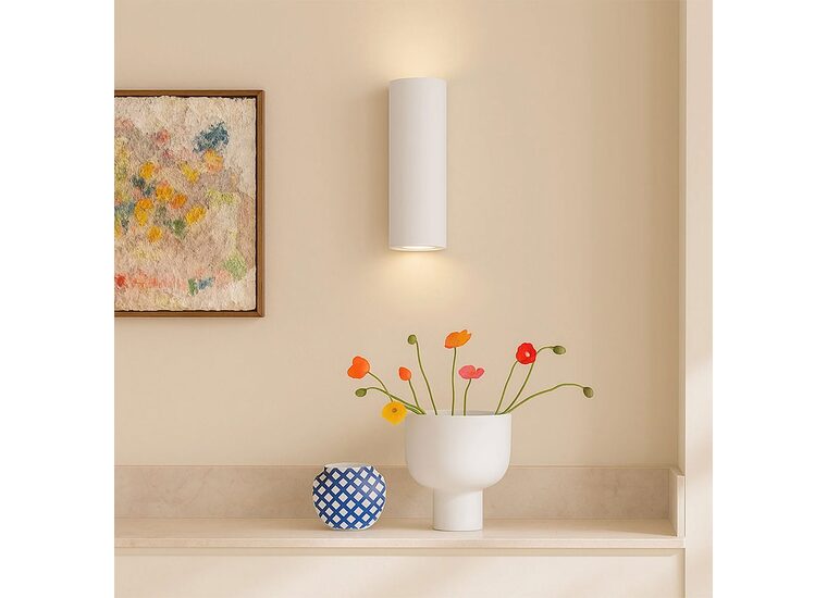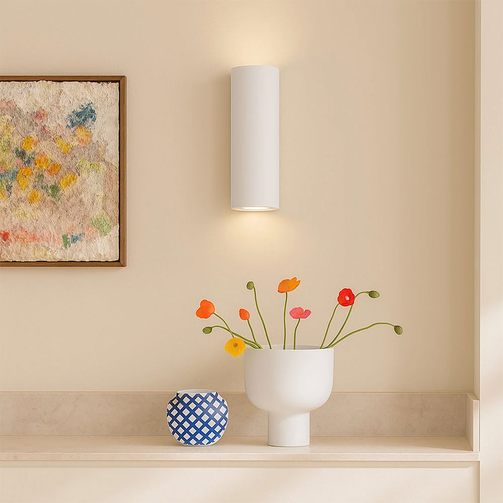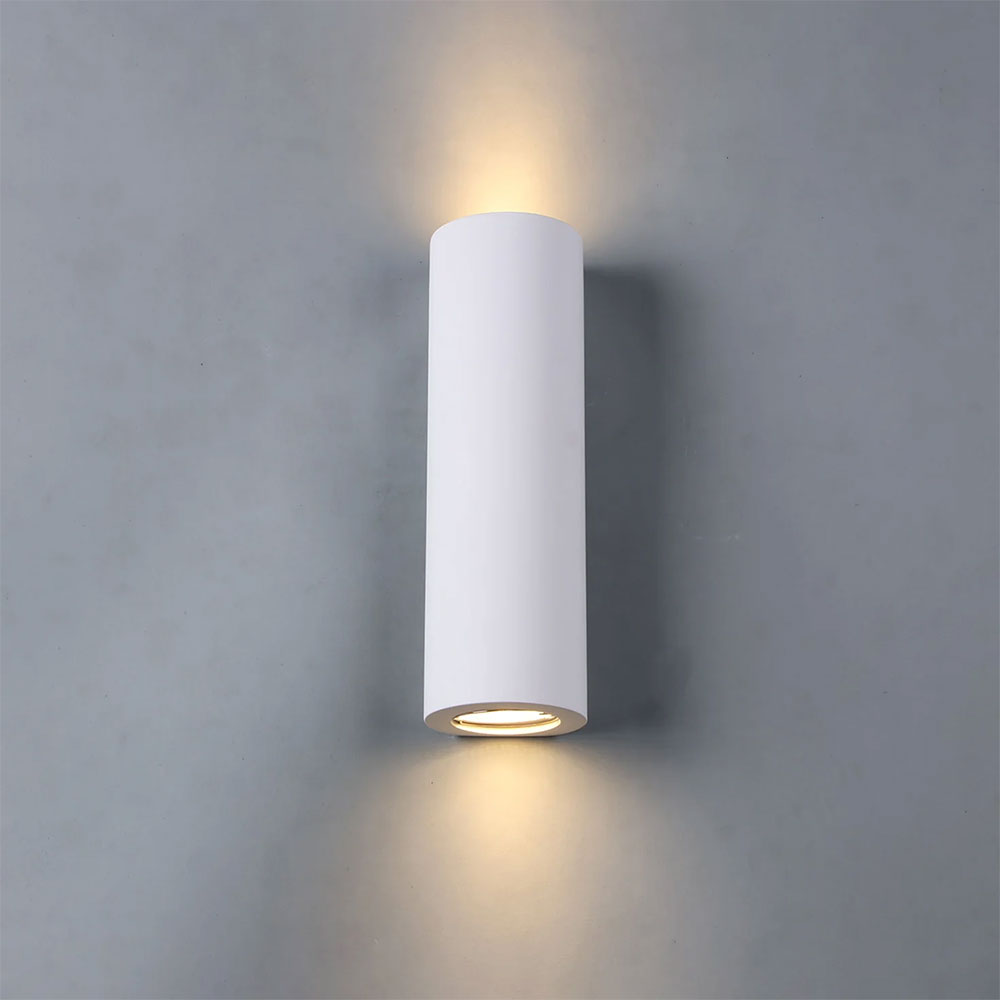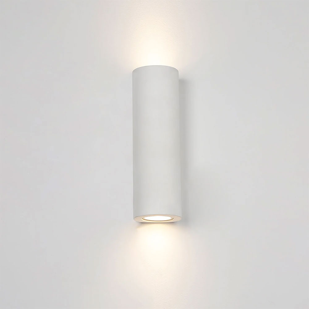 Elevate your modern space with the Onyx 2lt Plaster Wall Sconce, featuring a sleek contemporary minimalist design defined by its smooth white plaster cylinder shade, createing an abundance of welcoming light and active accents perfect for enhancing the atmosphere in your living room, bedroom, hallway, corridor, stairwell, or entryway, seamlessly combining functional lighting with stylish modern charm.