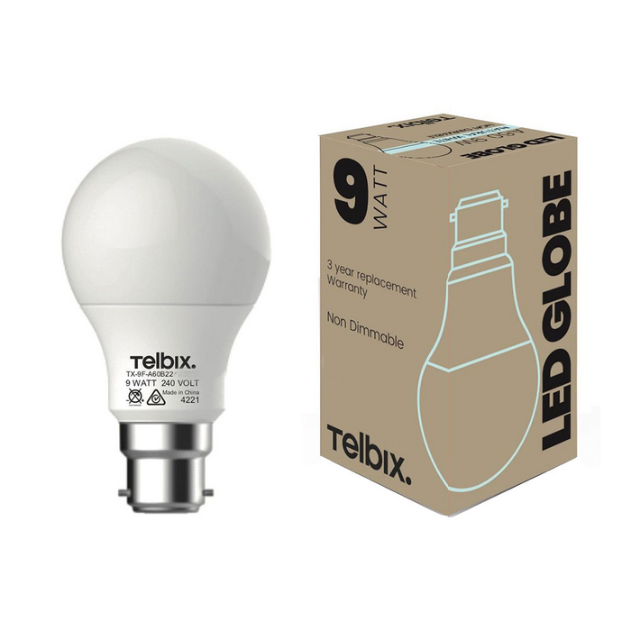 LED A60 style Lamp B22 / 6000K / 9W. High luminous efficacy makes this lamp an excellent replacement for a traditional incandescent lamp.