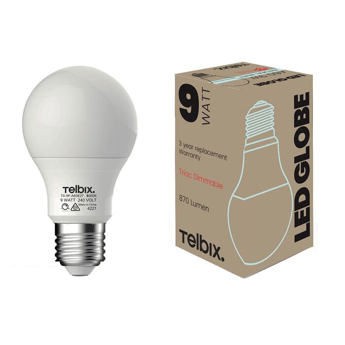 LED A60 style Lamp E27 / 6000K / 9W. High luminous efficacy makes this lamp an excellent replacement for a traditional incandescent lamp.