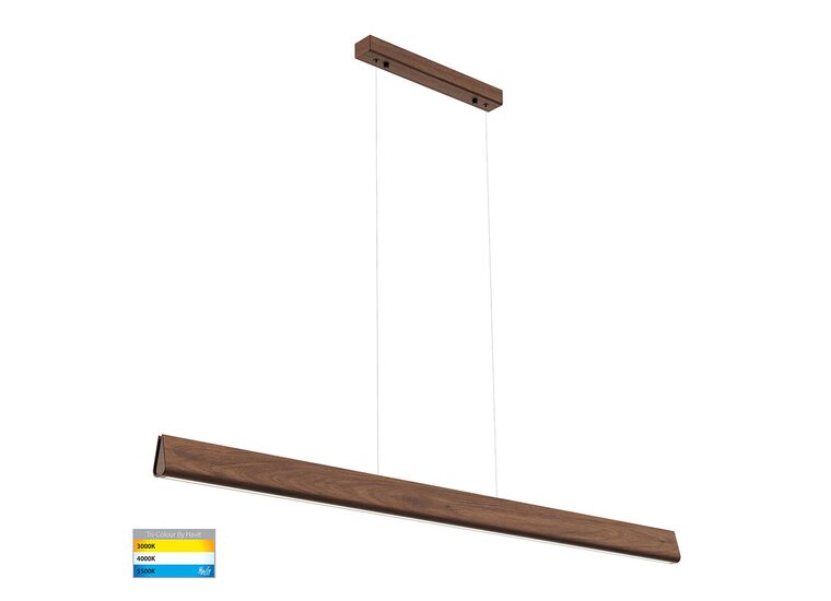 The Havit HV6014T (Opex) is a 1800mm (1.8-meter) walnut timber LED linear pendant light designed for modern indoor, residential, or commercial applications, such as over kitchen islands or dining tables.
