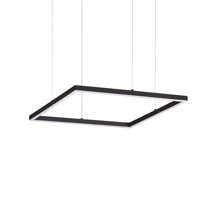 LED suspension lamp in matt white or black painted aluminum with opal polycarbonate diffuser.