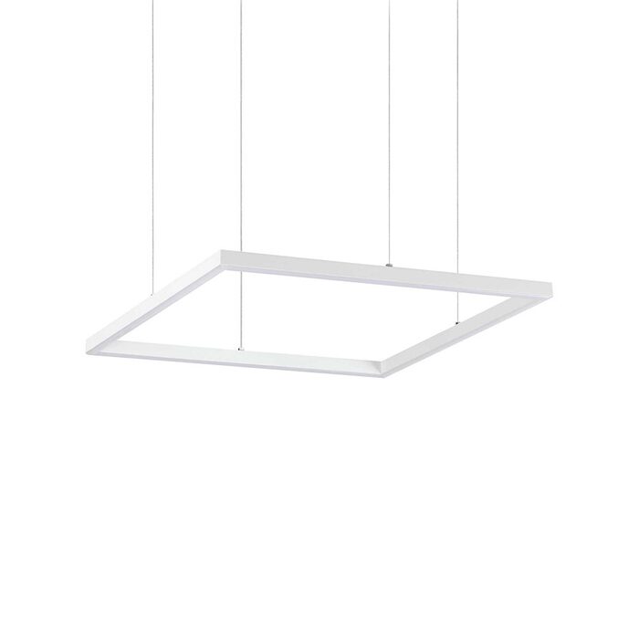 LED suspension lamp in matt white or black painted aluminum with opal polycarbonate diffuser.