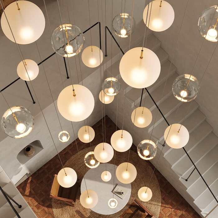 Available in three sizes and two different finishes. Orb Air offers versatility in arrangement, whether as individual suspensions, or in cluster combinations.