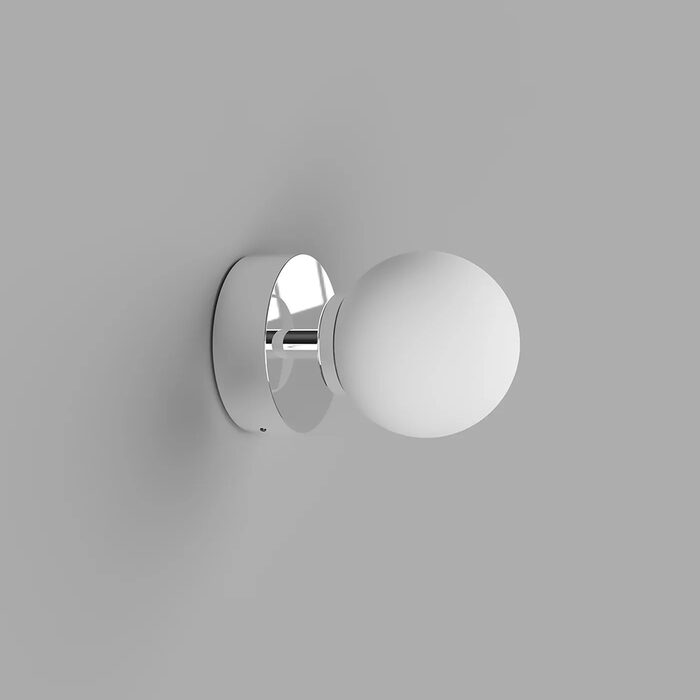 The Orb Short Arm Wall Light is available in three finishes: Chrome, Dark Bronze and White plus two glass sizes: Small (Ø8cm) and Medium ( Ø12cm).