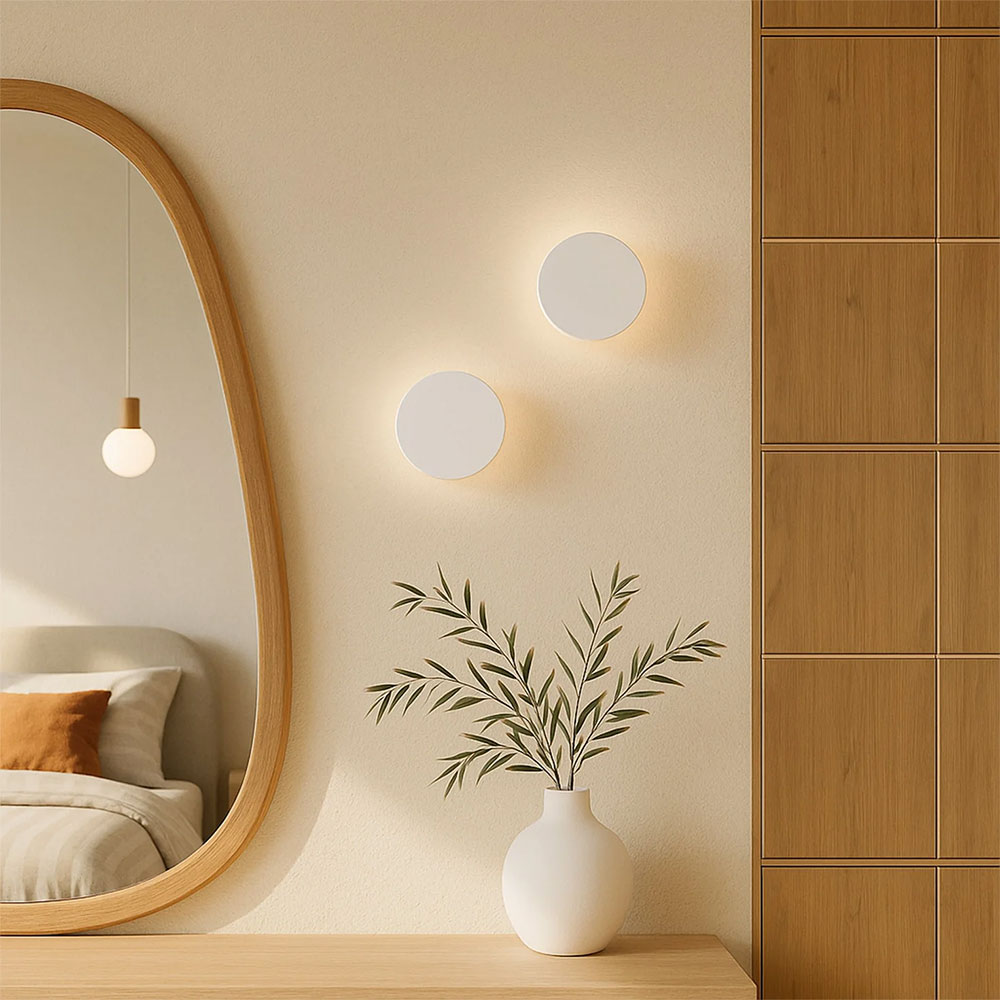 Elevate your space with the Orlan LED Colour-Shifting Disc Wall Sconce, featuring a sleek, modern, minimalist circular disc silhouette in smooth matte white or black that blends seamlessly with contemporary interiors for understated elegance.
