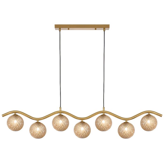 The Orton 7 light pendant is a chic and distinctive lighting fixture with a wavy frame which is available in antique gold or black.