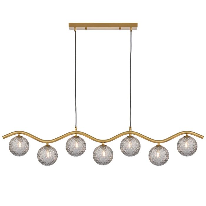 The Orton 7 light pendant is a chic and distinctive lighting fixture with a wavy frame which is available in antique gold or black.