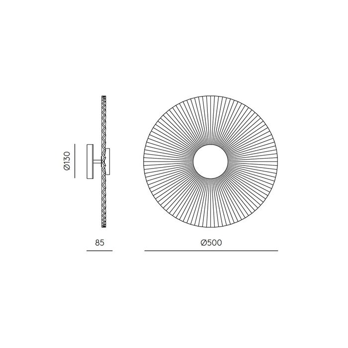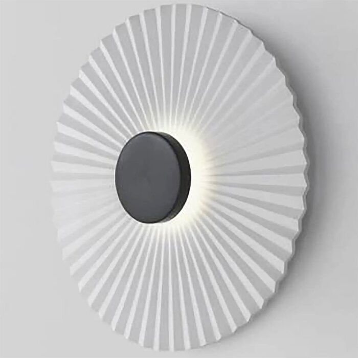 Spanish-designed Osion Wall Light with a modern appeal. Features a textured resin disc with a central metal reflector.