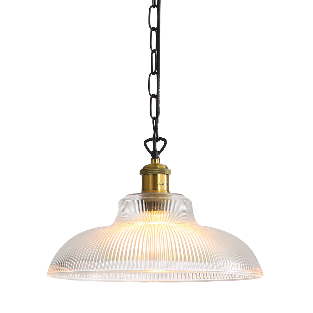 We recommend using a clear LED filament globe (sold separately) to highlight the Holophane design of the clear glass.