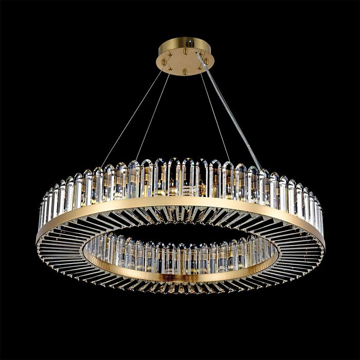 Augmented with the glam brass gold finish and the shiny crystals, this chandelier strikes a perfect balance of visual interest and contemporary glam style.