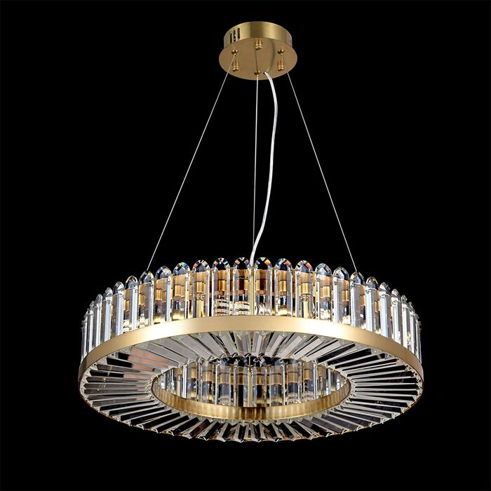 Chic and sophisticated, this crystal gold chandelier is stellar and sparkles with transparent crystal pieces above your living room, master living room, bedroom, or dining room.