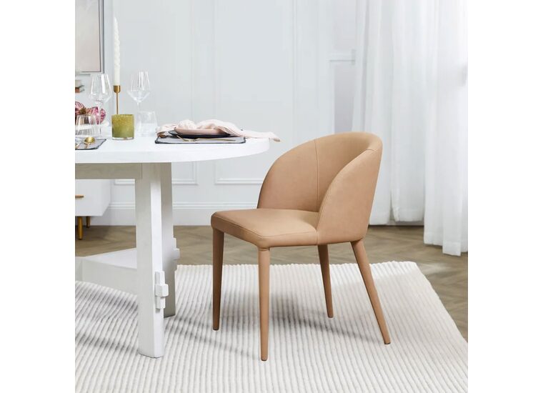 Expertly upholstered in a gorgeous tan vegan leather, the Paltrow dining chair features a sophisticated profile where clean curves and slender legs create a sense of contemporary charisma.