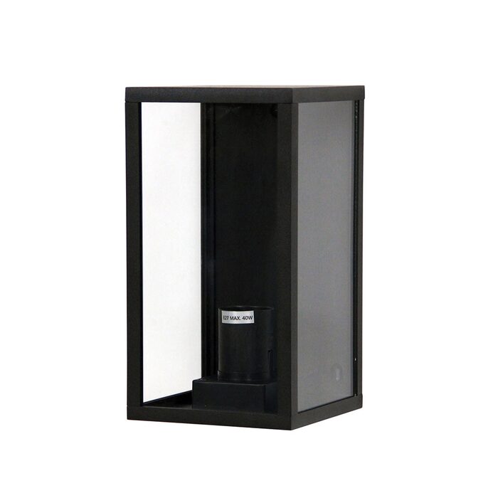 PANDORA outdoor wall light in matt black finish, with a clear glass. Available flush to the wall, or extended on a bracket.