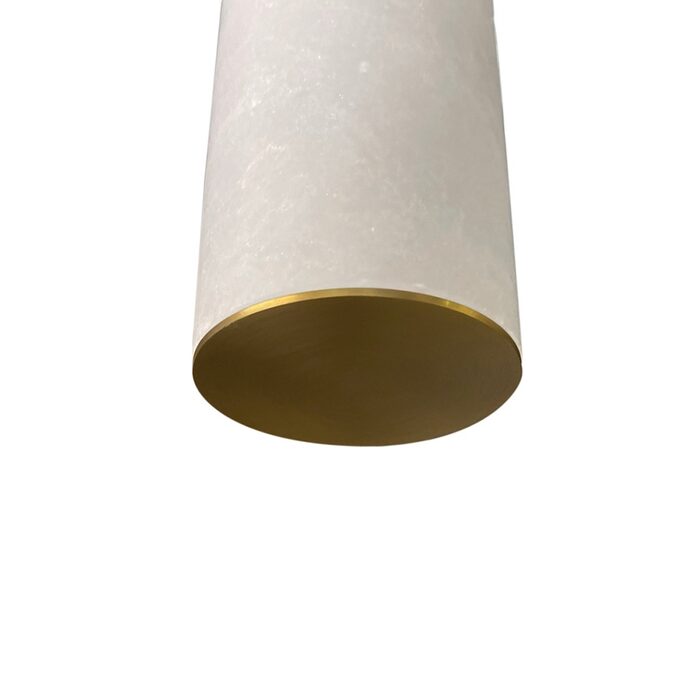 An epitome of luxury, this pendant effortlessly merges the timeless charm of white marble with the resplendent glow of gold and hints at the meticulous craftsmanship behind its creation.