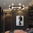 This stunning fixture boasts sixteen marble shades, each with unique veining patterns that add a touch of sophistication to any room.