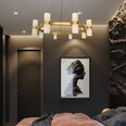 This sophisticated lighting fixture features sixteen elegant marble shades, each showcasing unique veining patterns.