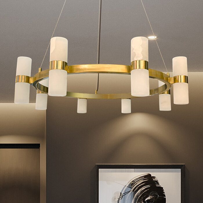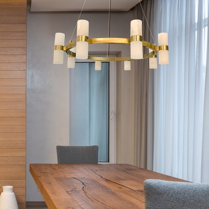 Ideal for dining rooms, living areas, or entryways, the Panish 16LT Marble Pendant seamlessly blends modern design with luxurious materials.