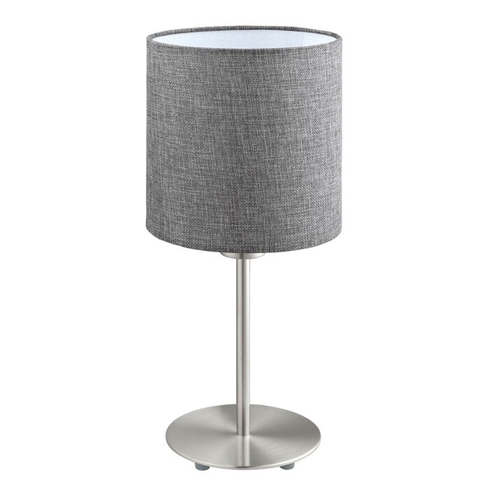 Featuring a beautiful grey fabric / linen shade and finished with satin nickel metalware.