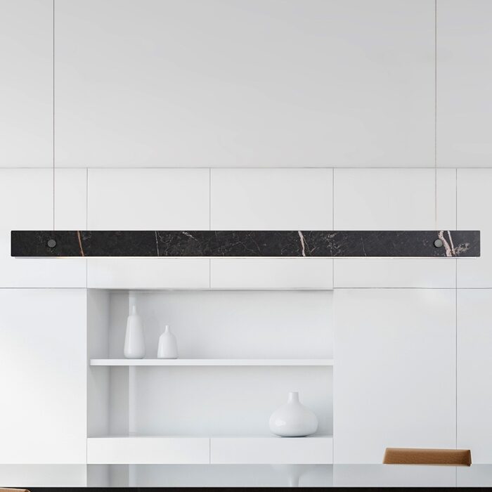 This magnificent fixture emanates elegance and sophistication, intertwining the timeless allure of slate with the opulent sheen of black.
