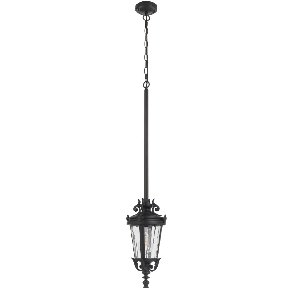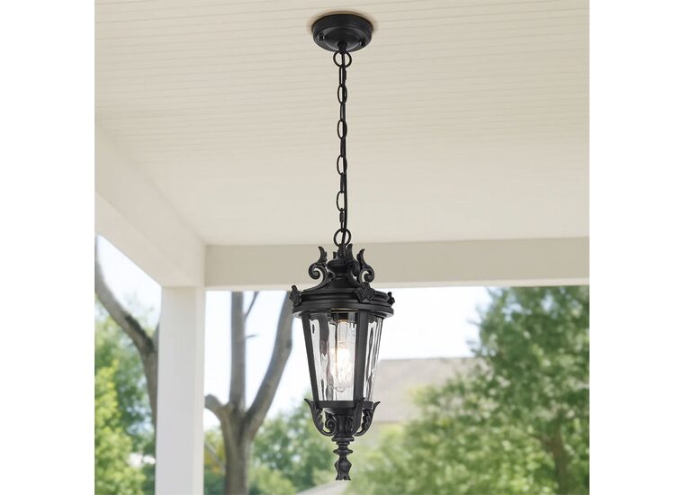Crafted from aluminium with textured glass, the pendant offers flexible multi-suspension installation using chain, rod, or both—ideal for enhancing classic outdoor settings.