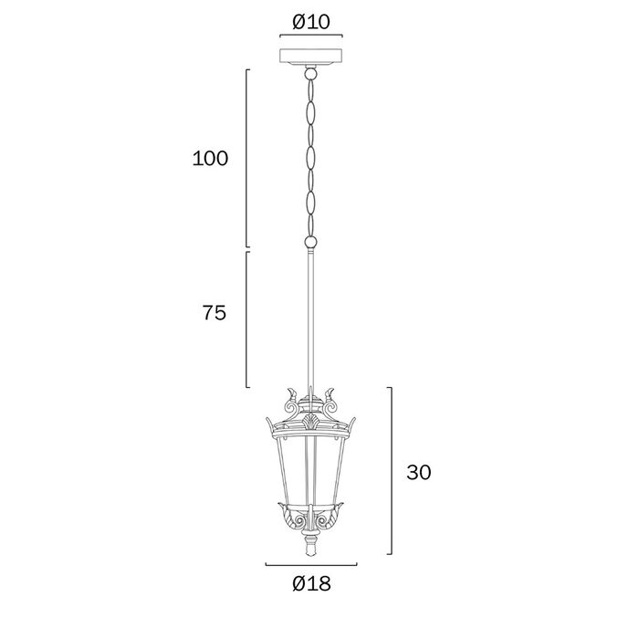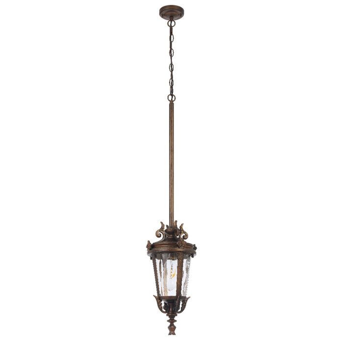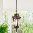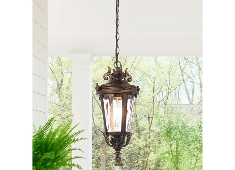 Crafted from aluminium with textured glass, the pendant offers flexible multi-suspension installation using chain, rod, or both—ideal for enhancing classic outdoor settings.