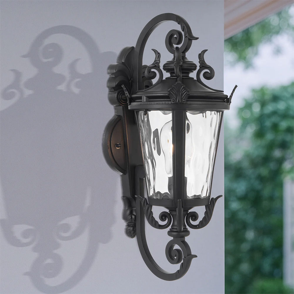 The Pedral exterior light brings vintage charm in a traditional coach-style design, available as a wall light or pendant in black or bronze finishes.
