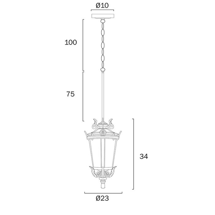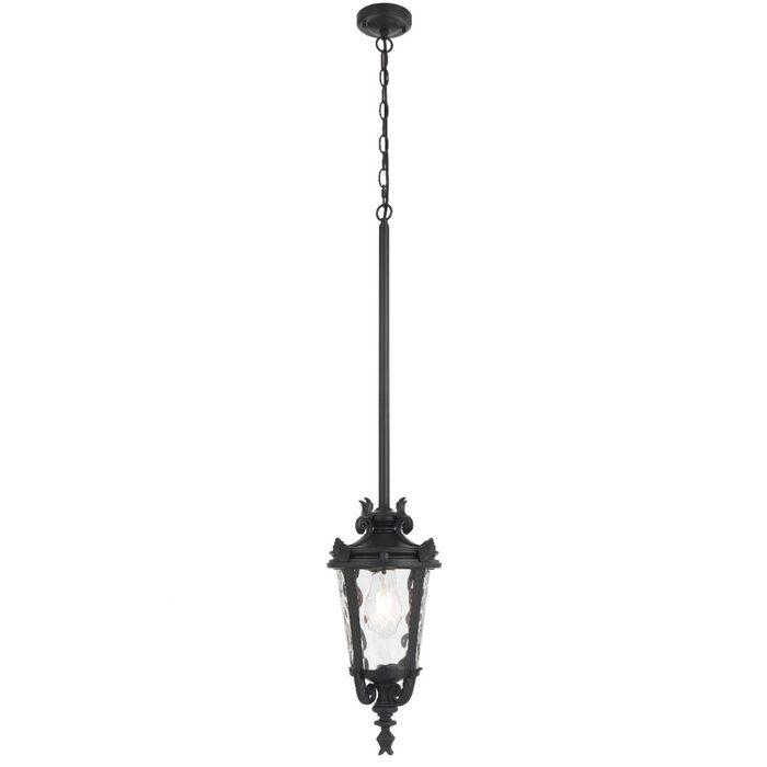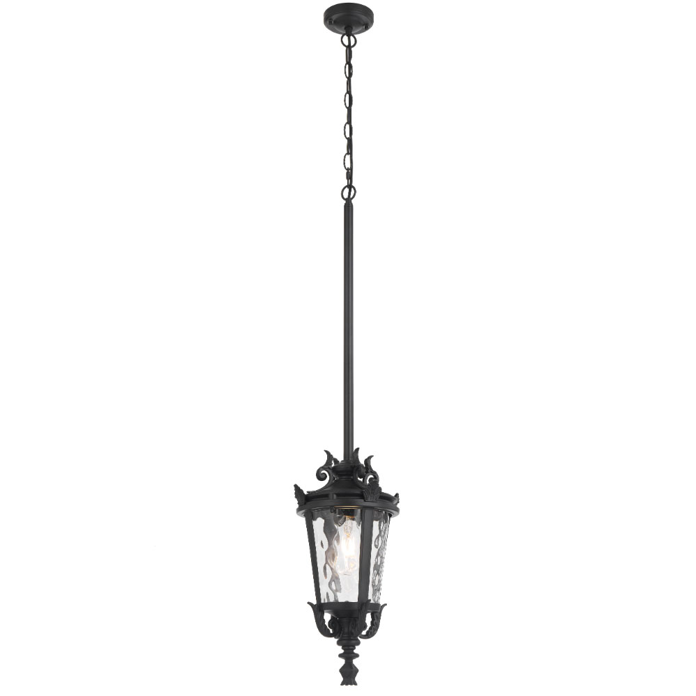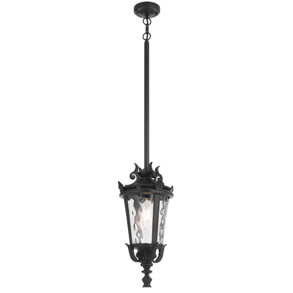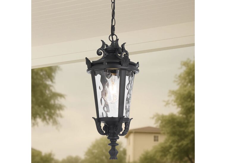 Crafted from aluminium with textured glass, the pendant offers flexible multi-suspension installation using chain, rod, or both—ideal for enhancing classic outdoor settings.