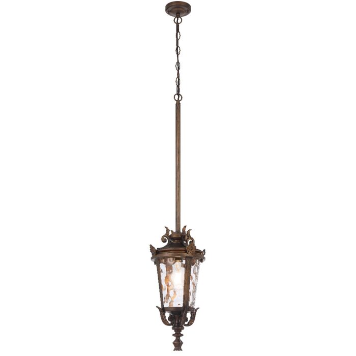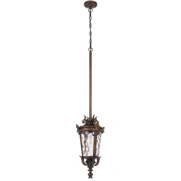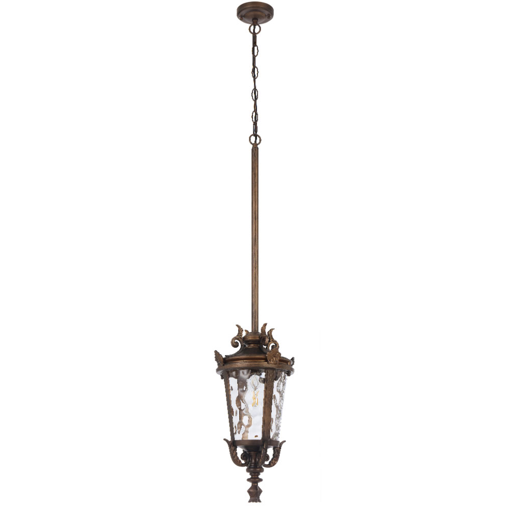 Crafted from aluminium with textured glass, the pendant offers flexible multi-suspension installation using chain, rod, or both—ideal for enhancing classic outdoor settings.