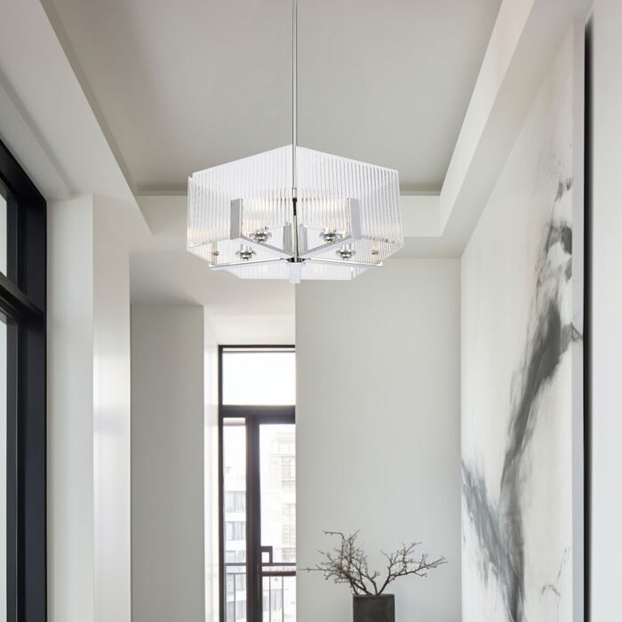 The Pelion pendant range offers a sophisticated lighting solution available in three versatile styles: one light, four light, and five light pendant.