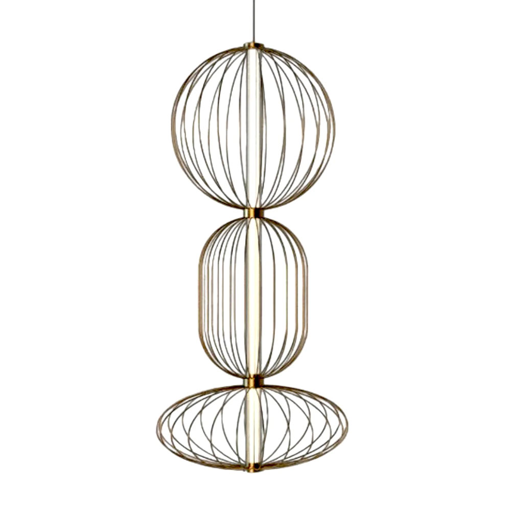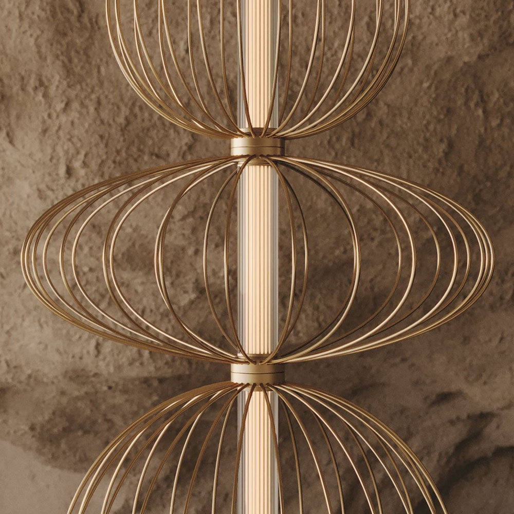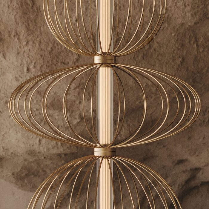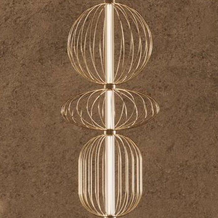 The most striking characteristic of the Pepo Collection is the diversity of forms. These pendants are a true celebration of design ingenuity, with each one featuring a unique, carefully crafted form. One boasts a perfectly circular and spherical shape, another takes on a gracefully contoured and organic form, and the third embraces an elegant, elongated oval form. These forms aren’t just shapes; they are sculpted with precision, resulting in a ribbed frame made of metal that is both structured and beautifully curved.