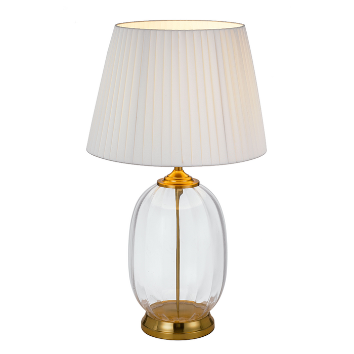 The Perla is a classic oval shape ribbed glass table lamp.