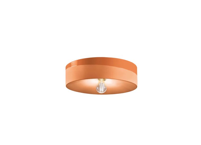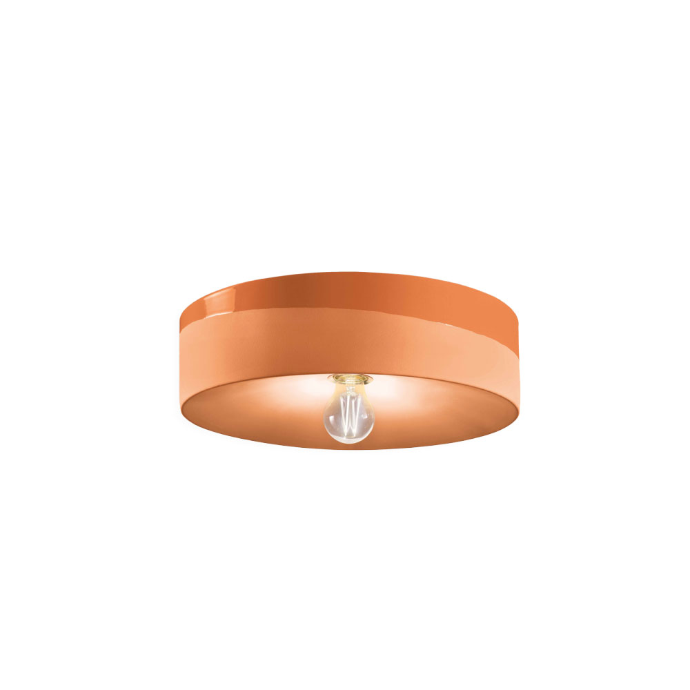 The PL Flush Mount Light in Peach Orange by Ferroluce features a beautifully handcrafted ceramic design with a smooth, vintage-inspired finish.