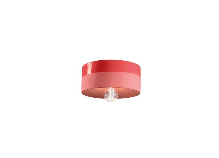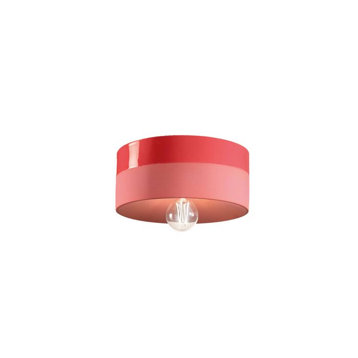 The PL Flush Mount Light in Coral Red by Ferroluce features a beautifully handcrafted ceramic design with a smooth, vintage-inspired finish.