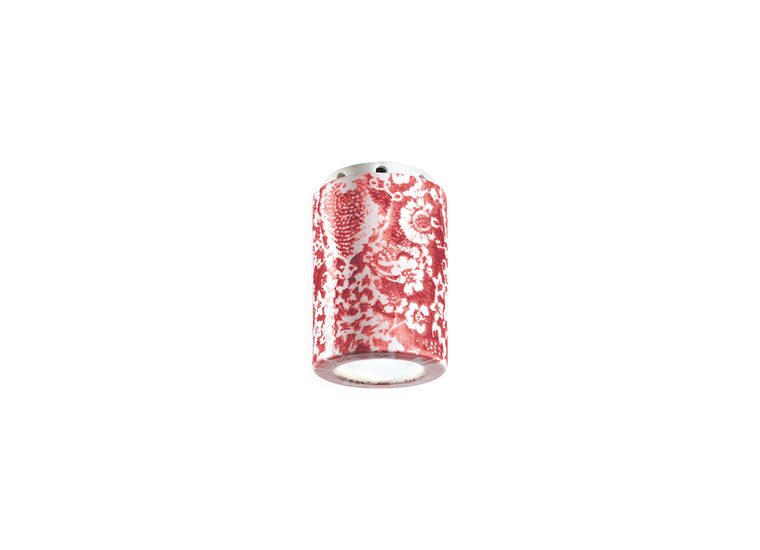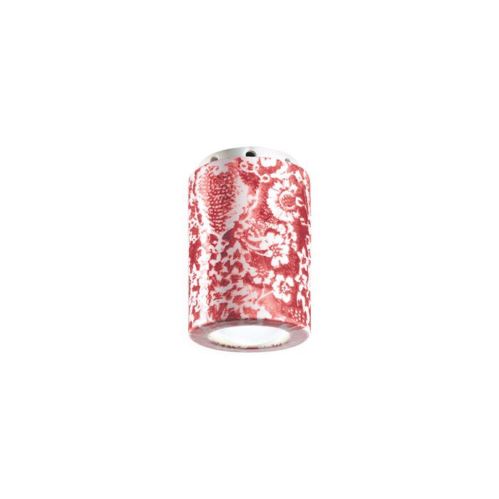 The PI 85mm Flush Mount Light in Ming Red by Ferroluce brings a vibrant touch to any room.