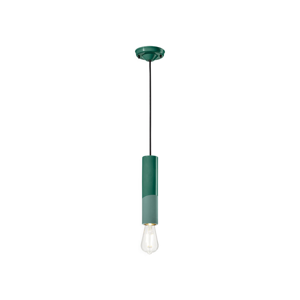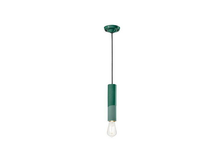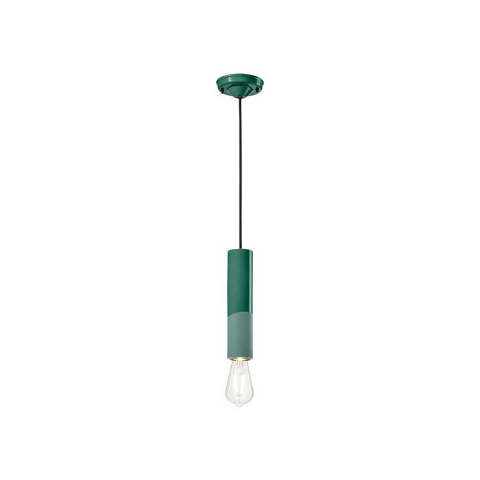The PI 55 mm Pendant Light in Bottle Green by Ferroluce features a sleek ceramic design with a vintage touch.
