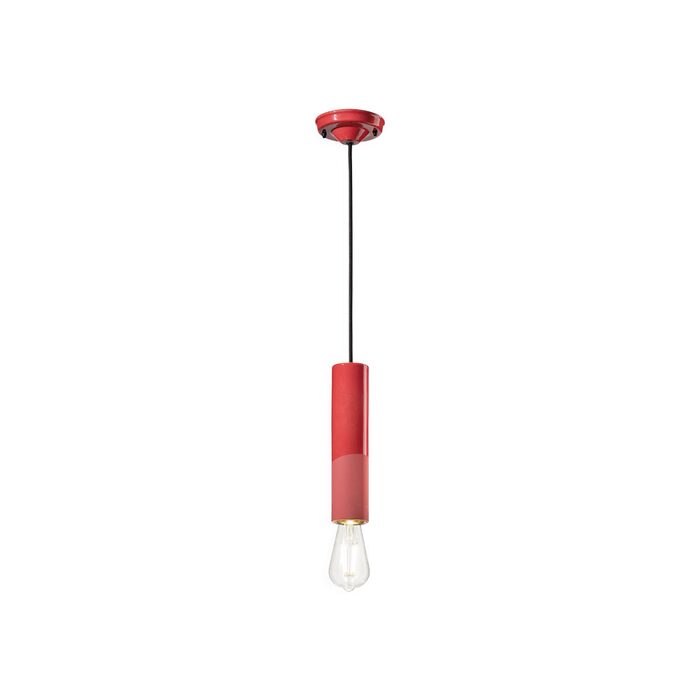 The PI 55 mm Pendant Light in Coral Red by Ferroluce brings a vibrant touch with its smooth ceramic design.