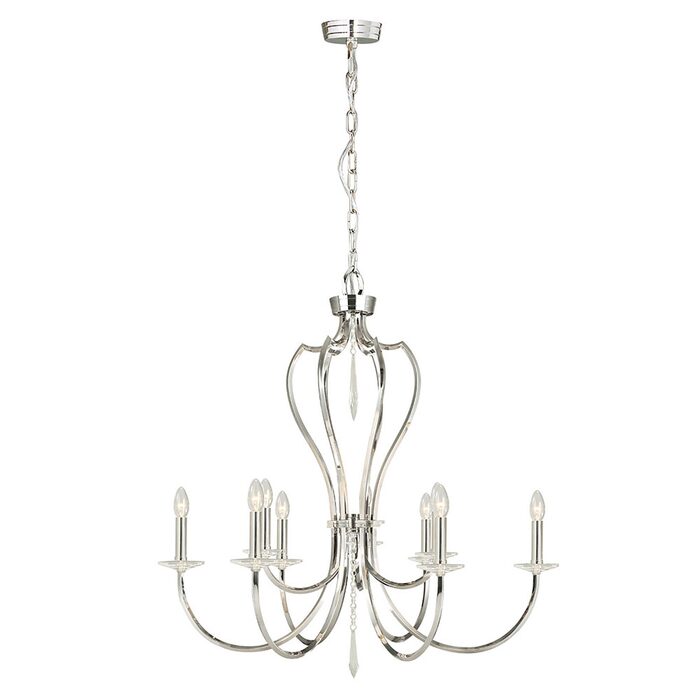 Using Brass as its main constituent, the Pimlico features fine cut glass sconces and droplets to accent either the Polished Nickel or Dark Bronze finishes.