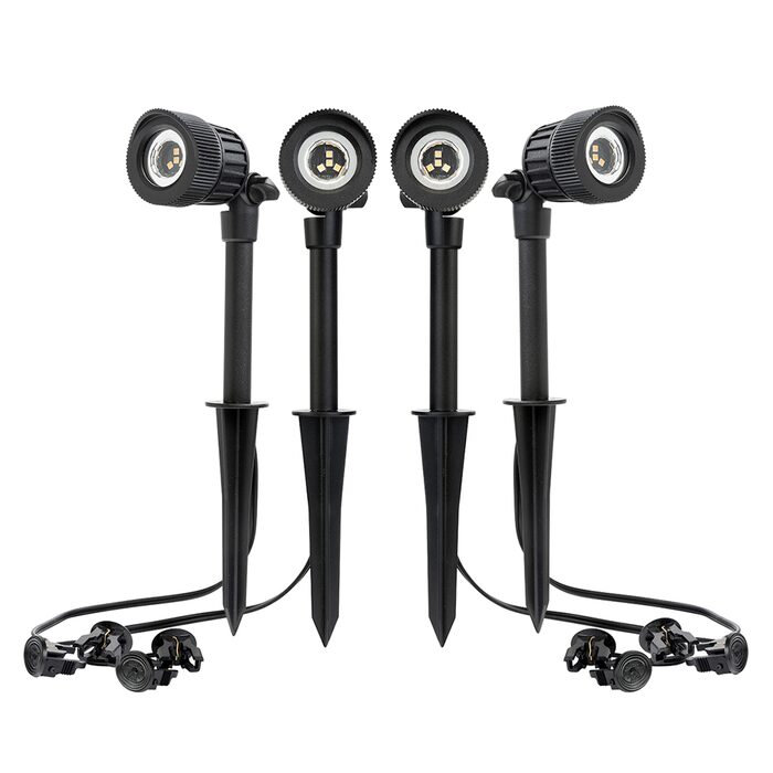 Modern outdoor garden spotlight kit. Heavy-duty spike for quick and easy installation.
