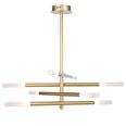 Featuring integrated LED rods that emit a warm 3000K color temperature, it is constructed from durable iron and available in both gold and black finishes.