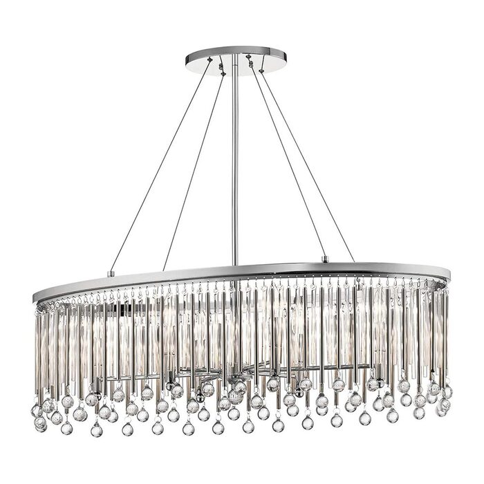 Making this a focal point in any modern room is the linear detail in the clear glass and metal rods finished in Chrome.