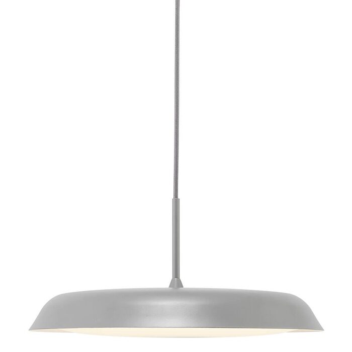 The Piso pendant is made of elegant grey metal, which together with the soft shapes give the lamp a minimalistic expression. The pendant emits a practical homogeneous light through the frosted shade and therefore, it is ideal above the dining table or kitchen island.