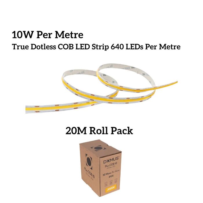 The PLEX-COB series of LED strip incorporates the latest in LED COB chip technology, with true dotless appearance utilising 640 LEDs per metre.