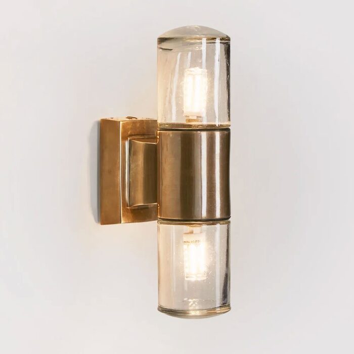 Elegant and sophisticated, the Plover wall sconce combines the timeless qualities of clear glass with antique brass finished hardware.