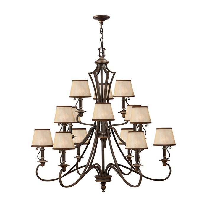 hand-rubbed Old Bronze finish and light amber organza shade.