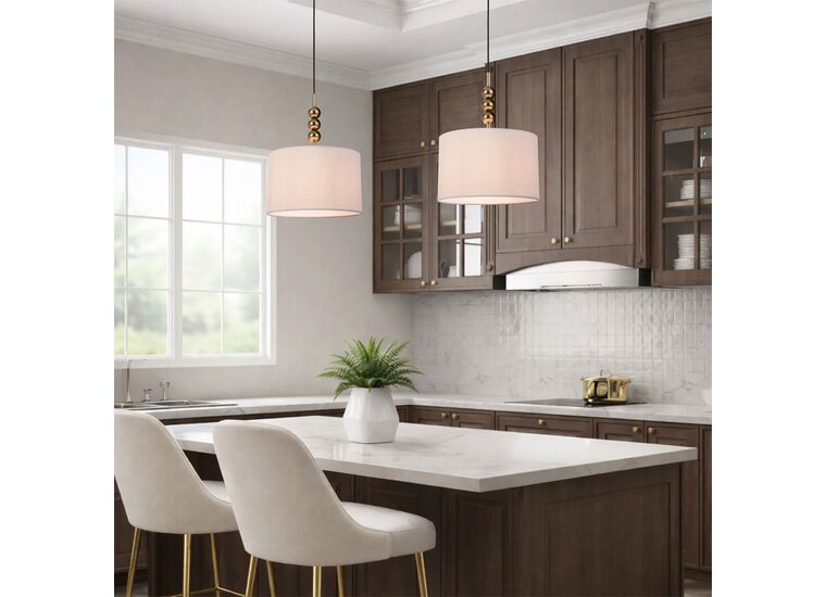 The Poetix range features elegant stacked‑sphere detailing paired with soft ivory shades, creating a refined modern‑glam look.