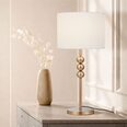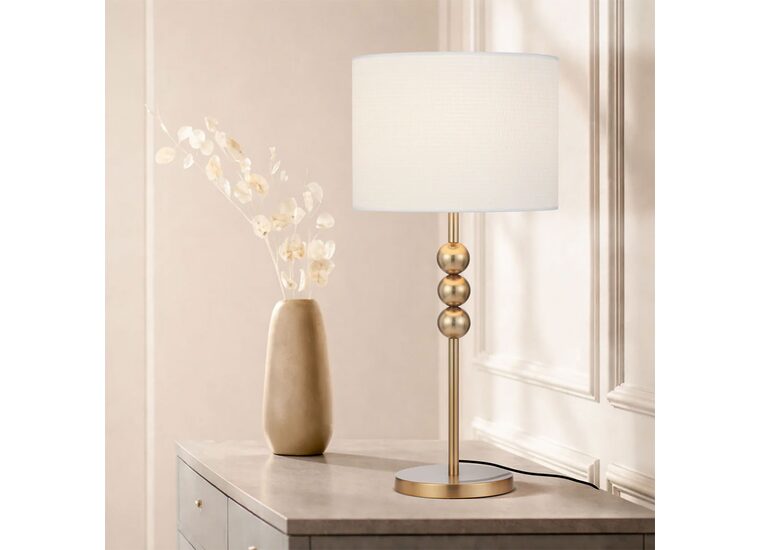 Available in matt gold or glossy beige, the collection includes a table lamp, floor lamp, and pendants in two sizes, offering cohesive styling throughout the home.