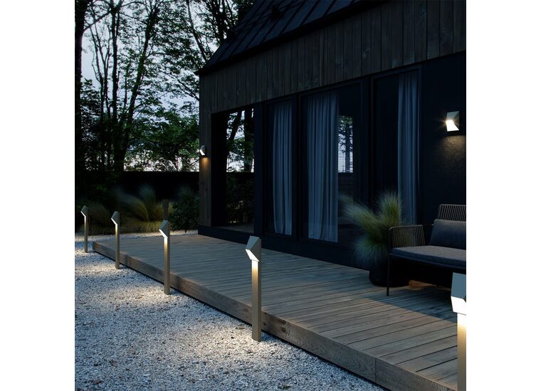 Matte, slightly textured surface in painted aluminium. Easy installation in ground with the Nordlux base unit.